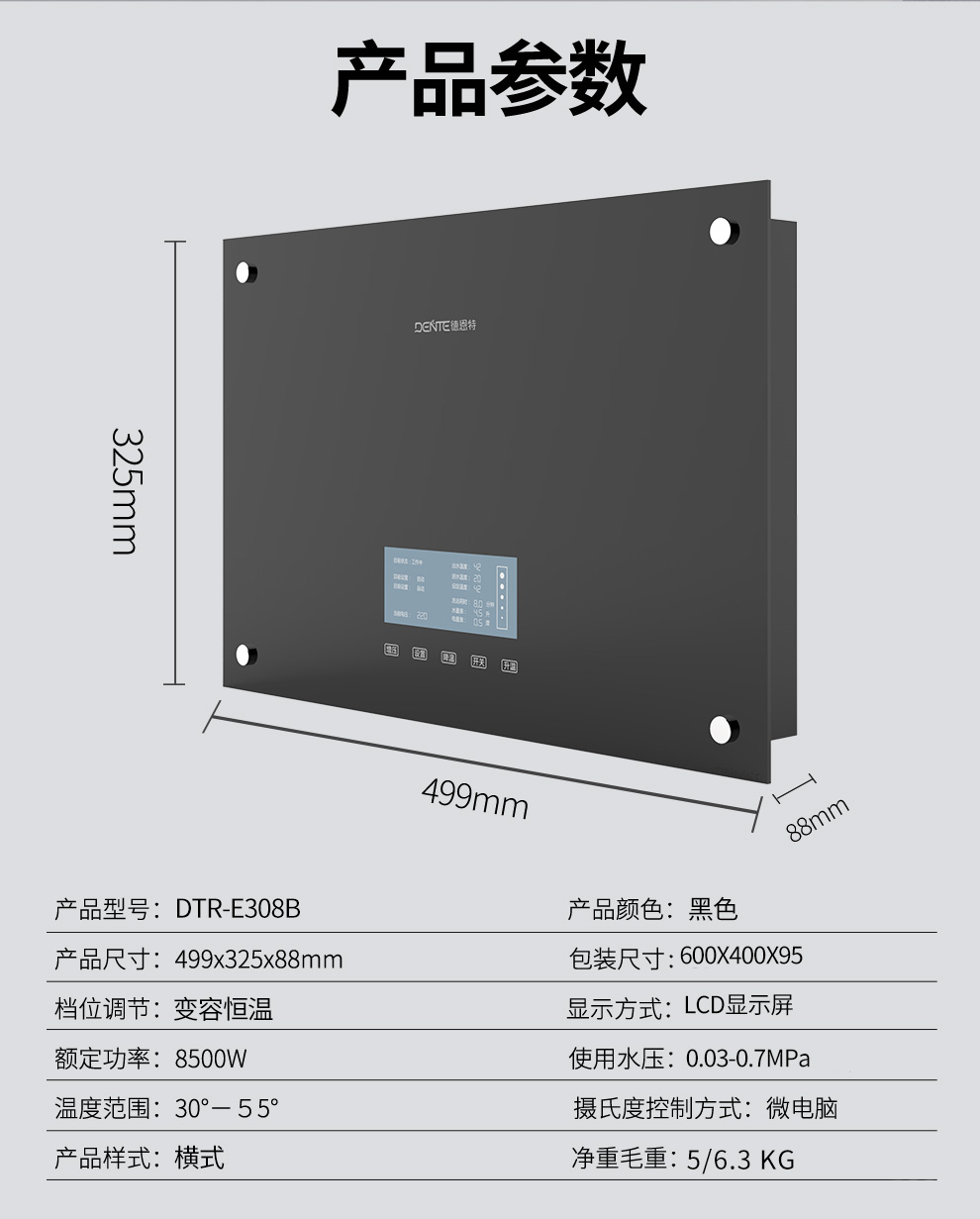 ——德恩特DTR-E308B 家用恒溫淋浴熱水器